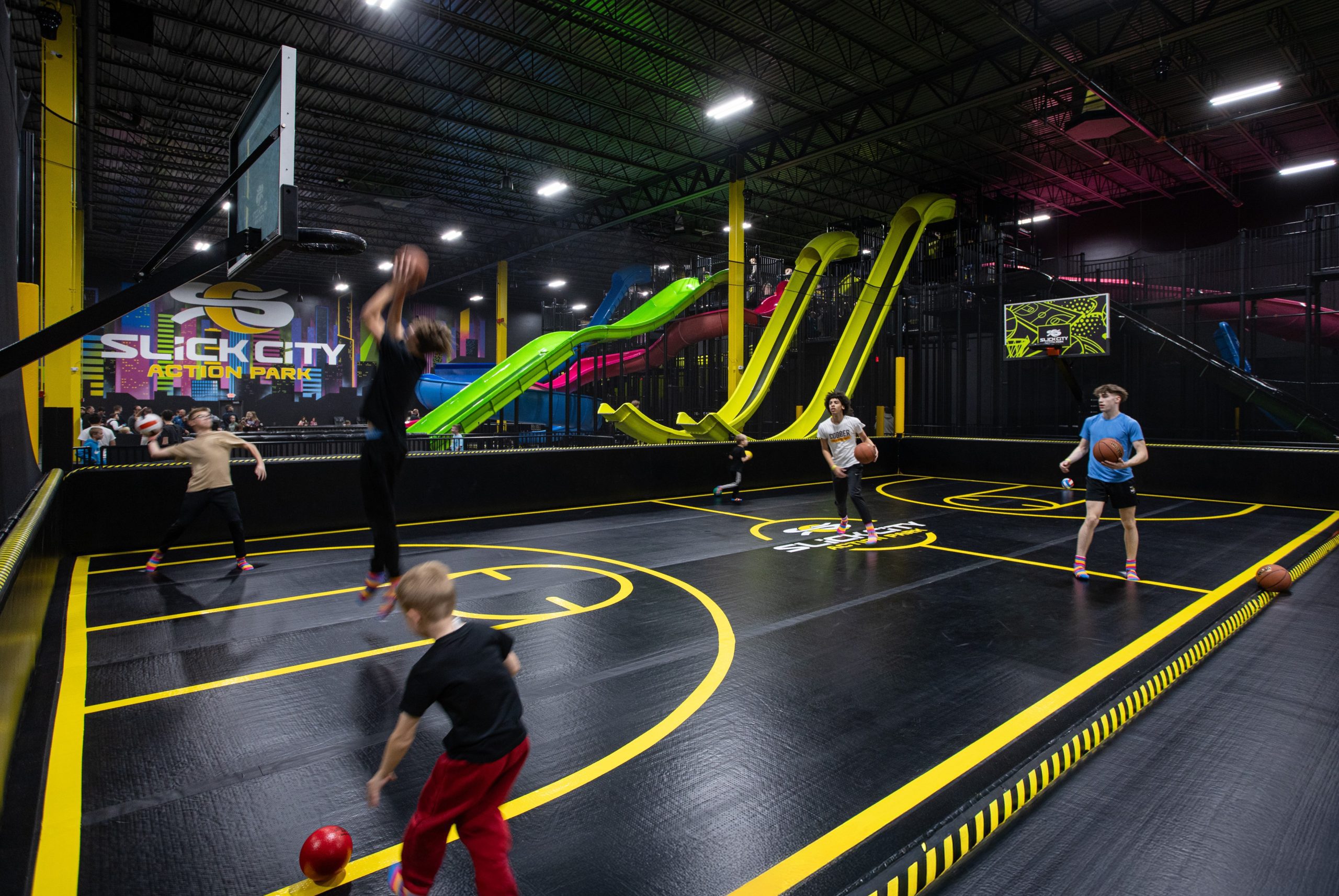 The park features a variety of gravity-powered dry slides engineered for speed and excitement, ranging from steep drops and twisting runs to side-by-side racing slides and bowl-style experiences. Additional attractions include cushioned air courts designed for basketball, dodgeball, and freestyle movement, along with a dedicated junior play area featuring smaller slides and climbing elements tailored for younger visitors. Together, these amenities create a dynamic environment that encourages active play, friendly competition, and social interaction.